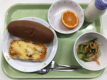献立 ココアパン シェパーズパイ こんにゃくサラダ オレンジ 牛乳