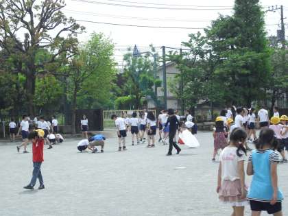 運動会を3週後に控えて、校庭で安全に体育が行えるように、全校一斉清掃を行いました。昼休みに校庭に集合し、校庭に落ちている小石やごみを拾いました。短時間に、バケツ3杯ほどの小石や小枝、ゴミが集まりました。