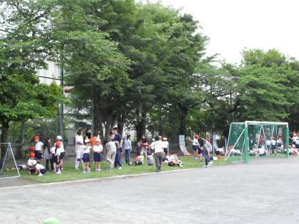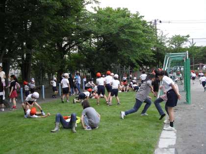 今年度、この出前講座に申し込み、5月21日(土)に芝生が設置されました。校庭東側(緑道側)のサッカーゴールの後ろ側に、広さおよそ100平方メートルの天然の芝生が敷かれました。月曜日の休み時間になると、子どもたちはさっそく芝生に寝転んだり、車座になって話し込んだり、思い思いの姿勢で芝生の感触を楽しんでいました。