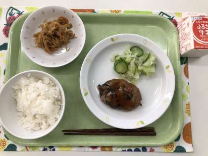 【献立】 ごはん 秋茄子バーグ ひとしお野菜 切干大根の煮物 牛乳