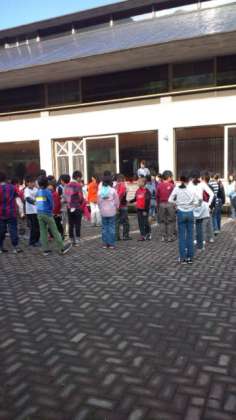 朝会がはじまりました。今日も良い天気です。