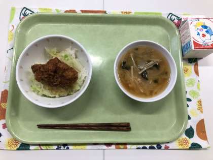 【献立】ソースかつ丼 みそ汁 牛乳