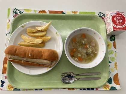 【献立】 ウインナーサンド ABCスープ フライドポテト 牛乳
