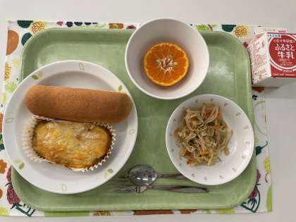 献立 米粉パン カテージパイ もやしサラダ 早香 牛乳