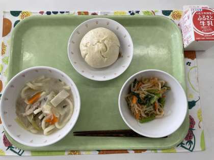 献立 ちゃんぽんうどん 肉まん 野菜のコチジャンダレ 牛乳