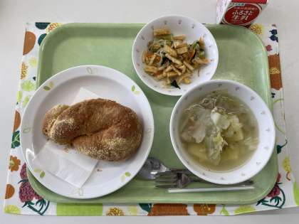 献立 きなこ揚げパン ポトフ 油揚げのサラダ 牛乳