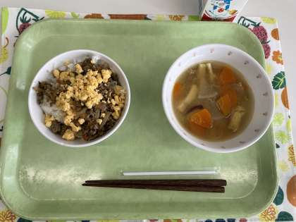 献立 飛び魚そぼろご飯 めった汁 牛乳