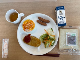 おはようございます。朝の会を済ませ、朝食の時間です。ここまでみんな元気です。今日も一日頑張ります。いただきます。