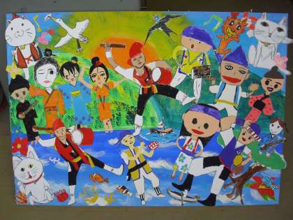 4年生以上の15名が力を合わせて、元気いっぱい大きな絵を完成させました。