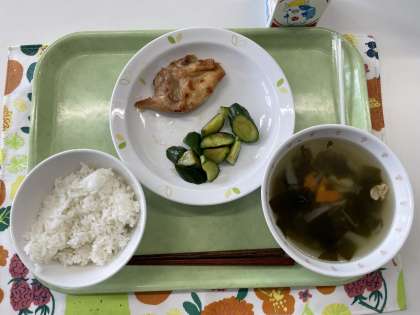 献立 ごはん 鶏の照り焼き ピリ辛きゅうり わかめスープ 牛乳