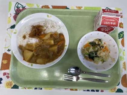 献立 カレーライス 福神漬け 寒天サラダ 牛乳