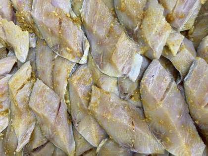 1.シイラは、にんにくのすりおろし、酒、塩、コショウで下味をつけておく。