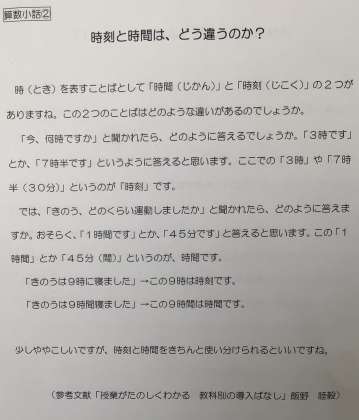 算数小話はその2「時刻と時間は、どう違うのか?」に変わりました。