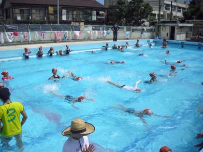 9月12日、1・2年生はプール納めをしました。天候にもめぐまれ、子どもたちは気もちよさそうに泳いでいました。最後の検定に、全力で挑戦した子どもたち。今年の夏も、自分の目標に向かって一生けんめい練習し、大きく成長することができました。まっ黒に日焼けした子どもたちの笑顔が光っていました。