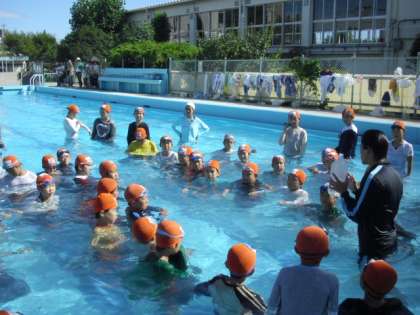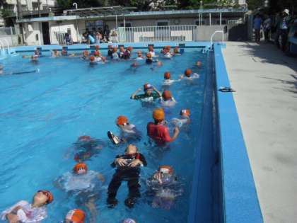 もしも、川や海などで溺れそうになったらどうするか、また、溺れている人に対してどのような行動を取るか・・・など、緊急時の対応法を学びました。また、衣服やペットボトルなどの浮力を利用して浮く方法など、体験を通して学ぶことができました。