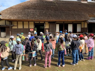 民家園では、ガスや電気のない生活を送っていた頃の家を見学し、説明をしていただきました。茅葺き屋根の家を初めて見た児童もいたようで、勉強になりました。