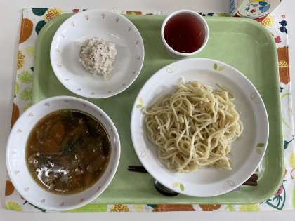 献立 中華つけ麺 チンジュワンズ ぶどうゼリー牛乳