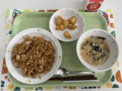 献立 そばめし じゃがバター(リクエストメニュー) たまごスープ 牛乳