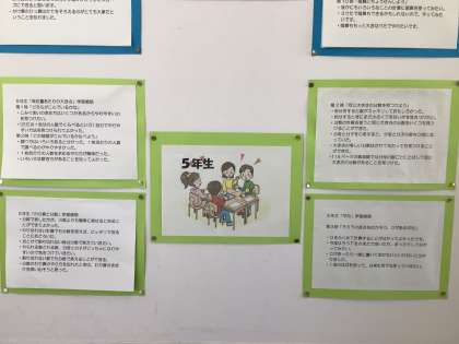 学習感想は5年生の写真を掲載しています。「わり算と分数」の学習では、「割り切れない計算でも、分数を使えば表すことができてびっくりした。」とか、「計算で割り切れない時は、分数を活用しようと思う。」などの感想が見られ、分数の便利さを感じることができていました。