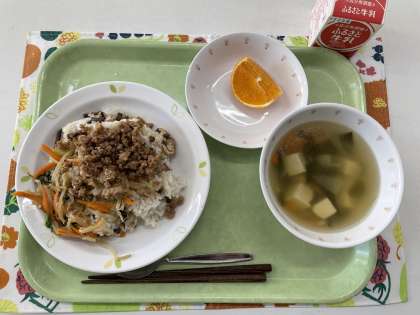 献立 ぜんまいのビビンバ わかめスープ オレンジ 牛乳