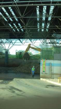 中央防波堤に着きました。粗大ゴミをくだいています。