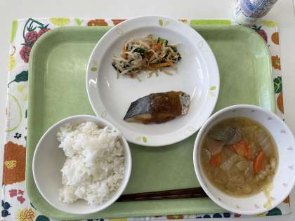 献立 ごはん 鰆のおろしだれ ごま和え 冬野菜の豚汁 ジョア