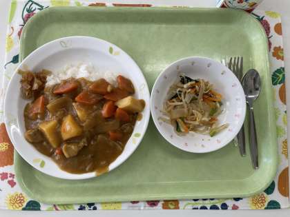 献立 カレーライス 福神漬け こんにゃくサラダ 牛乳