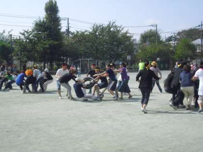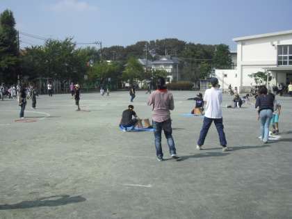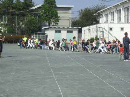 10月10日(月)の体育の日に、梅丘青少年健全育成委員会が主催する、「梅丘地域ミニ運動会」が本校校庭で開催されました。地区委員会、PTA校外委員会、ヤマザキメンズクラブ、消防団など多くの皆様のご協力のもと、城山小・山崎小の子どもたちと保護者が参加して、楽しい半日を過ごしました。世田谷中学校の中学生もボランティアで参加しました。赤・青の2色に分かれて、玉入れや綱引きなどの競技の他に、パン食い競争やWANTED!(借り物競走)など、学校の運動会にはない楽しい競技もあって、大人も子どもも一緒に楽しみました。
