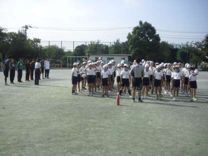 6年生は10月26日に控えた連合運動会の練習に取り組んでいますが、10月8日(土)の1時間目に、中学校の2人の体育専科の先生に来ていただいて、走り幅跳びとハードル走についてご指導いただきました。(連合運動会の出場種目は、100m走、50mハードル走、走り高跳び、走り幅跳びの4種目。)