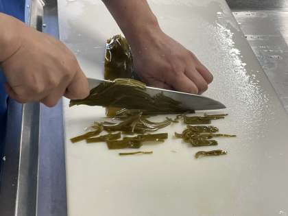 3.昆布が柔らかくなったら、残りの調味料を入れて、糸削りを入れる。