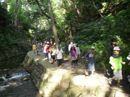 10月18日(火曜日)、社会科見学で、「世田谷区清掃工場・リセタ」→「次大夫堀公園」→「等々力渓谷」の順に、世田谷区めぐりをしました。「世田谷区清掃工場・リセタ」では各家庭から集められたゴミがどのようにして処分されていくのかを目の当たりにして、みんなおどろいていました。最新鋭の設備が施されており、子どもたちだけではなく、私たち大人もびっくりしたのでした。「次大夫堀公園」では昔の民家に入ったり、農具などを見たりと、とても貴重な体験をすることができました。民家に入ると、みんな「いろり」を見ておどろいた様子でした!(何となく落ち着くようで、みんな「いろり」の周りに1度座り、手をかざしてホッと一息ついていた様子が印象的です♪)美味しいお弁当を食べた後は、「等々力渓谷」を歩き、世田谷区に存在する、素晴らしい自然にふれたのでした。世田谷区のいろいろな所をめぐり、様々なことを見たり、体験したりした1日となりました☆