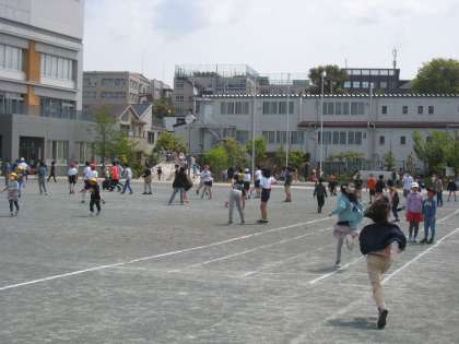 先日行われた対面式後から1年生も中休み・昼休みに校庭や体育館で遊べるようになりました。つかの間の時間、子どもたちは思い思いに体を動かして元気に遊んだり、せせらぎを観察したりしています。