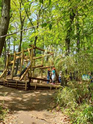 アスレチックに着きました。お天気もよく、子供たちは、新緑の中を元気に活動しています。