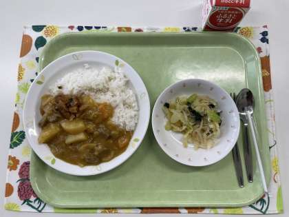 献立 カレーライス 福神漬け みそドレサラダ 牛乳