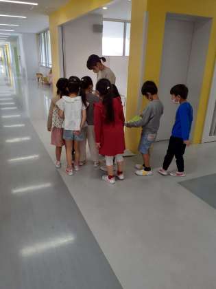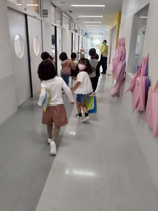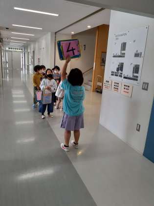 音楽室や図工室にも案内をします。チェックポイントでスタンプを押してもらいます。