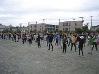 4月28日、今年度1回目の体育委員会による「わくスポ」。運動会前なので、全校児童でラジオ体操の練習を行いました。