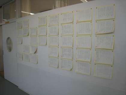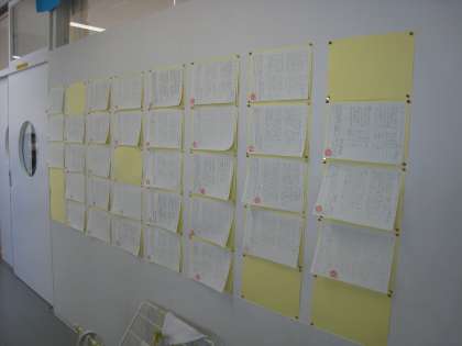5年生の廊下壁面には子どもたちが谷川俊太郎作「かんがえるのって おもしろい」の視写が掲示してあります。