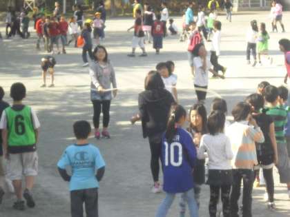 食事の後は、班ごとに楽しく遊びました。追いかけっこに大縄跳び、だるまさんが転んだなど、6年生が中心になって1年生から6年生までが一緒に遊ぶ様子は、とてもほほえましいものでした。