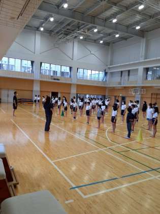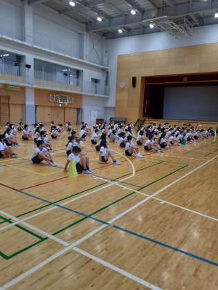 雨の日が続き、体育館で運動会の練習を行っています。これは、六年生の様子ですが、並んでいるだけでも美しさがあります。さすが、六年生です。