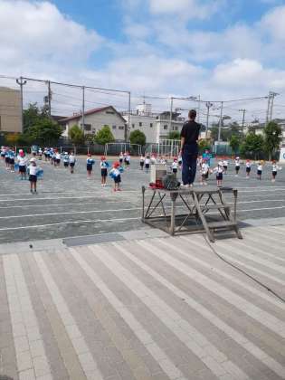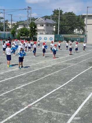 一時間目は、1年生の練習でした。お家で作ってきたボンボンが、陽にあたってキラキラとてもきれいです。並び方も上手になりました。