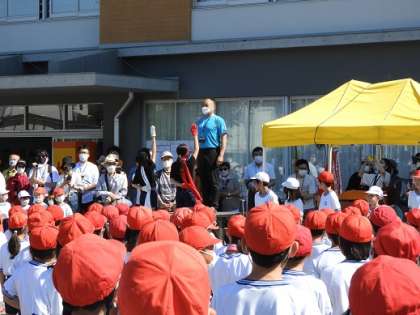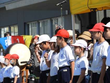 5月28日、快晴の空の下、運動会を開催できました。開会式では運営委員の児童が司会を務め、応援団長による「選手宣誓」、1年児童による「はじめのことば」、校長先生の話などがありました。