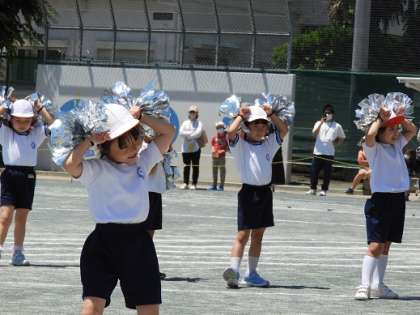 1年生の表現運動は「SHIROYAMA MICKEY」、皆さんがご存知の音楽に合わせて、チアダンスを元気よく踊りました。練習の成果を発揮できた演技を楽しんでいただけたでしょうか。