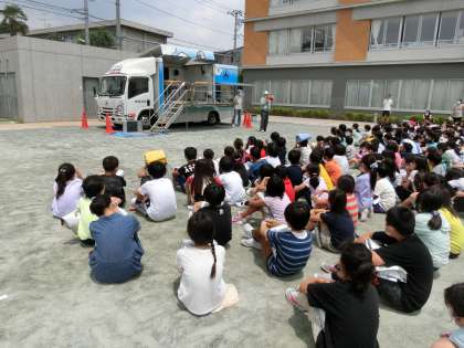 本日3時間目に地震を想定した避難訓練が行われました。児童は避難するときの約束をきちんと守り、避難できました。訓練後は6年生が起震車で震度7の揺れを体験しました。「揺れの強さが、予想していた揺れ方と全然違う」と驚きの声が多かったです。児童にとっても貴重な体験になりました。