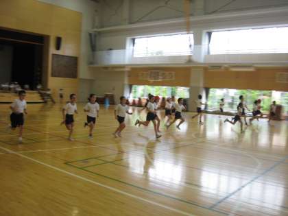6月8日、3、4年生の体力テストを実施しました。子どもたちは体育館で「上体お起こし」「長座体前屈」「反復横跳び」「立ち幅跳び」「シャトルラン」などに熱心に取り組みました。