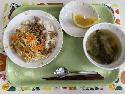 献立 コンナムルビビンバ わかめスープ ジューシーフルーツ 牛乳