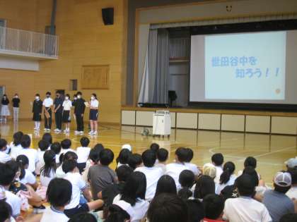 6月13日、6年生は若林小学校・山崎小学校の6年生と一緒に世田谷中学校で体験活動(授業、部活動)を行いました。最初に生徒会による世田谷中学校の説明がありました。授業体験は、国語・社会・数学・理科・英語・音楽・体育・技術の各教科を子どもたちが選択して受けました。部活動体験では、多くの文化部と運動部から子どもたちが希望した部活動を体験しました。子どもたちにとっては中学校の様子を直に感じられる貴重な経験になりました。