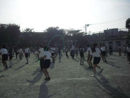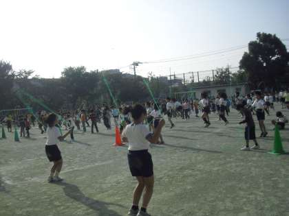 10月4日(金)の朝、「わくわくスポーツタイム」がありました。この日は、全校で短縄跳びを行いました。1分間で何回跳べるか挑戦したり、片足で跳ぶ回数を増やして、ケンケンで跳んだり、グーチョキパーで跳んだり、二重跳びをしたり・・・。様々な跳び方に挑戦しました。
