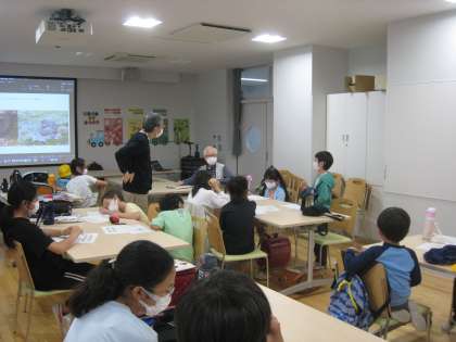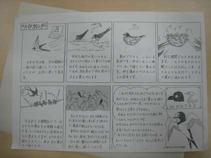 6月14日、第2回夕方探鳥会でしたが、残念ながら雨のためランチルームで行いました。楽しみに参加した子どもたちは27名、何人もが双眼鏡を持参していました。今回は野鳥ボランティアの方から燕のことについて沢山教えていただきました。