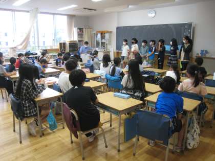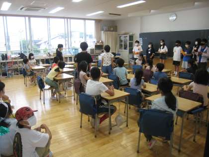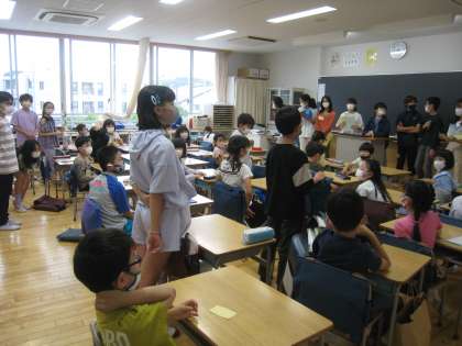 6月16日、令和4年度初めての「ともあそび」を朝の活動時間に行いました。今日は自己紹介と6年生が企画したゲームで楽しみました。「ともあそび」は、1〜6年生の異学年集団による12班の縦割り班を編制して様々な活動を年間7回行います。高学年の子どもたちの自主性と実行力を育て、縦割り班の人間関係を深めて思いやりの心を育むことがねらいです。