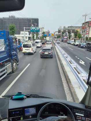 環八を関越自動車道に向けて北上しています。少し混んでいますが、みんな元気です。